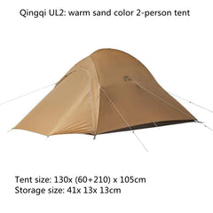 This lightweight tent offers a spacious one-room, one-hall design, perfect for camping and hiking. Made from durable nylon and aluminum alloy, it fits 1-3 people and provides reliable protection. Easy to carry and set up, it features double-layer construction for enhanced weather resistance. Dimensions: (120+215) ร 185 ร 130 cm.